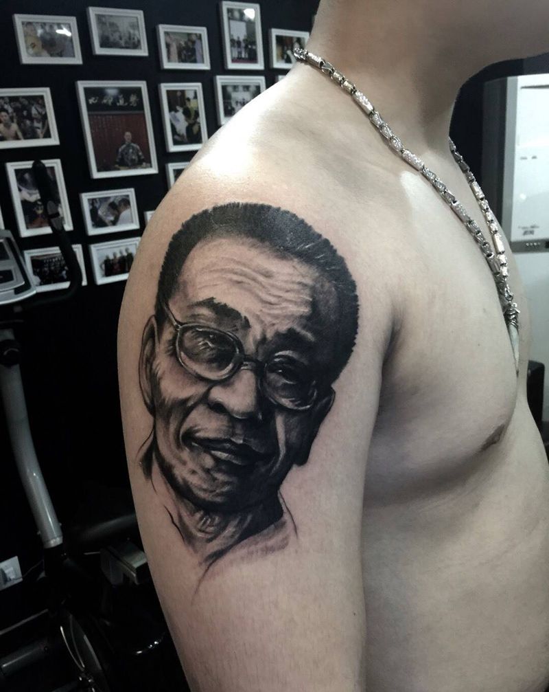 当前位置: 首页 >陕西省西安市纹身店-陕西同道堂文化传播有限公司纹身图案>肖像纹身纹身图片_手臂欧美写实肖像西安素描纹身图案