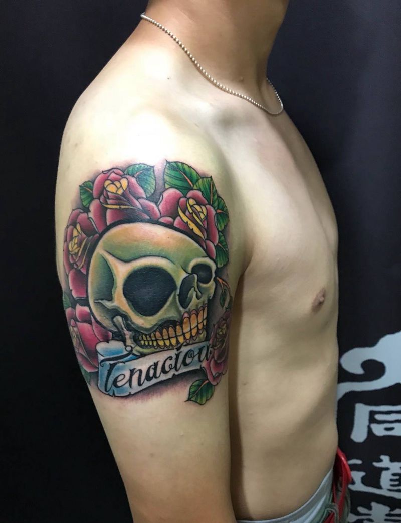 当前位置: 首页 >陕西省西安市纹身店-陕西同道堂文化传播有限公司纹身图案>骷髅纹身图片_西安刺青西安西安改图腾欧美手臂手稿成品纹身图案