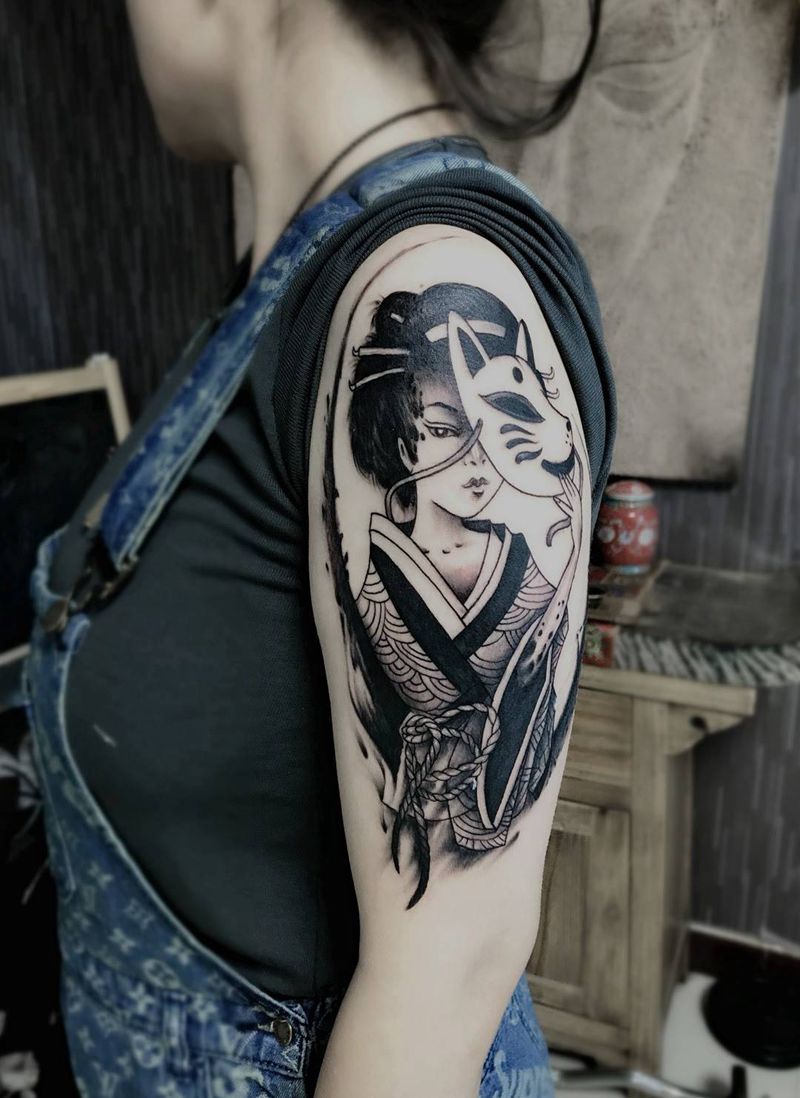• 纹身吧推荐的披肩图腾半胛纹身图案作品展示
