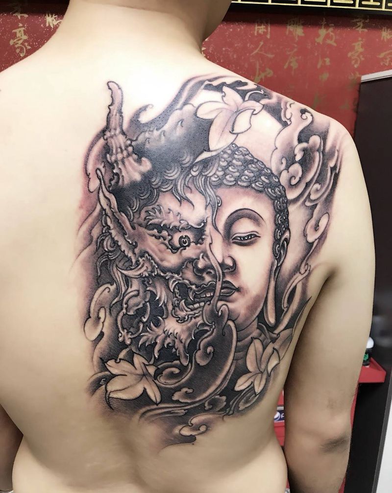 驻店纹身师作品纹身图片_背部新传统西安佛像纹身图案