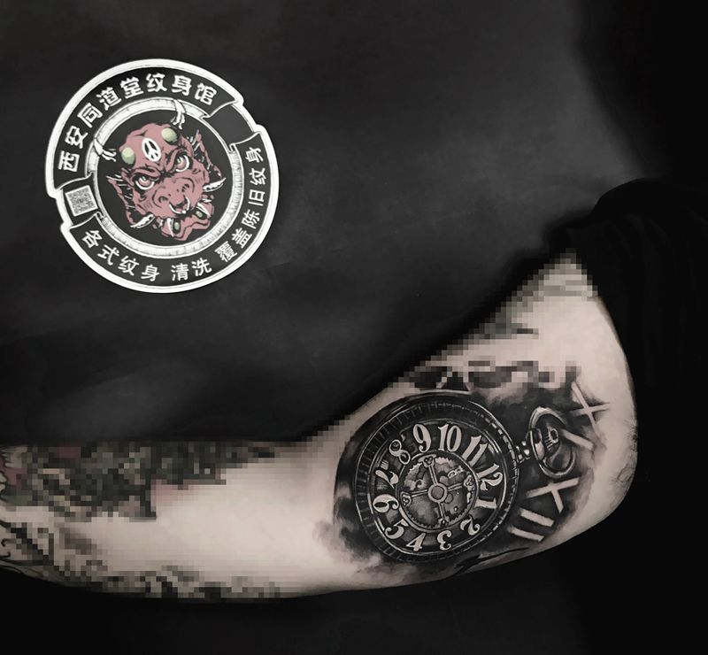当前位置: 首页 >陕西省西安市纹身店-陕西同道堂文化传播有限公司纹身图案>生命时刻纹身图片_手臂欧美写实New School纹身图案