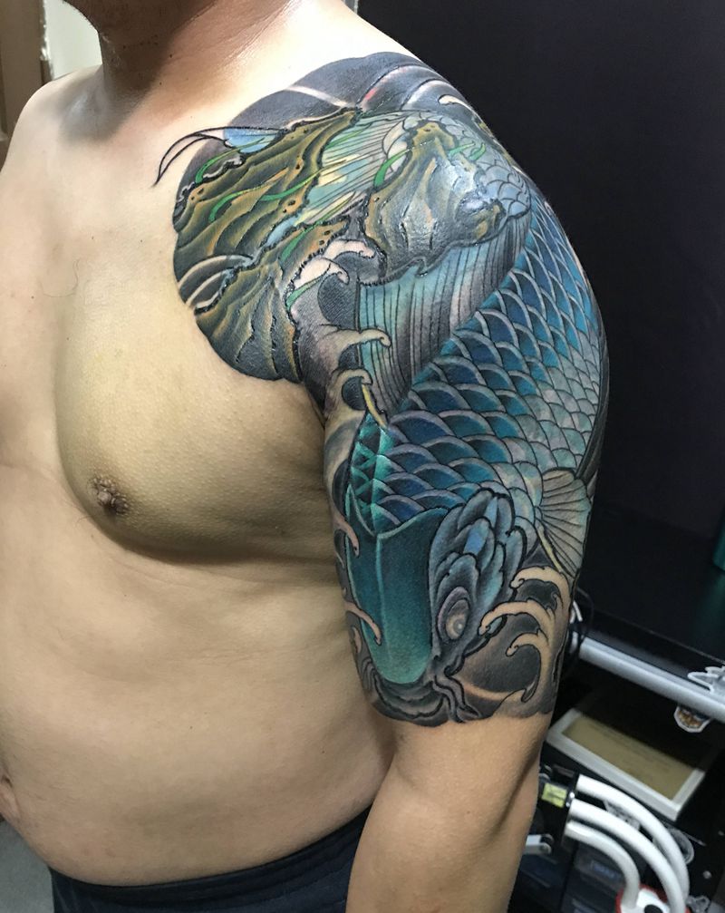 • 纹身吧推荐的披肩图腾半胛纹身图案作品展示