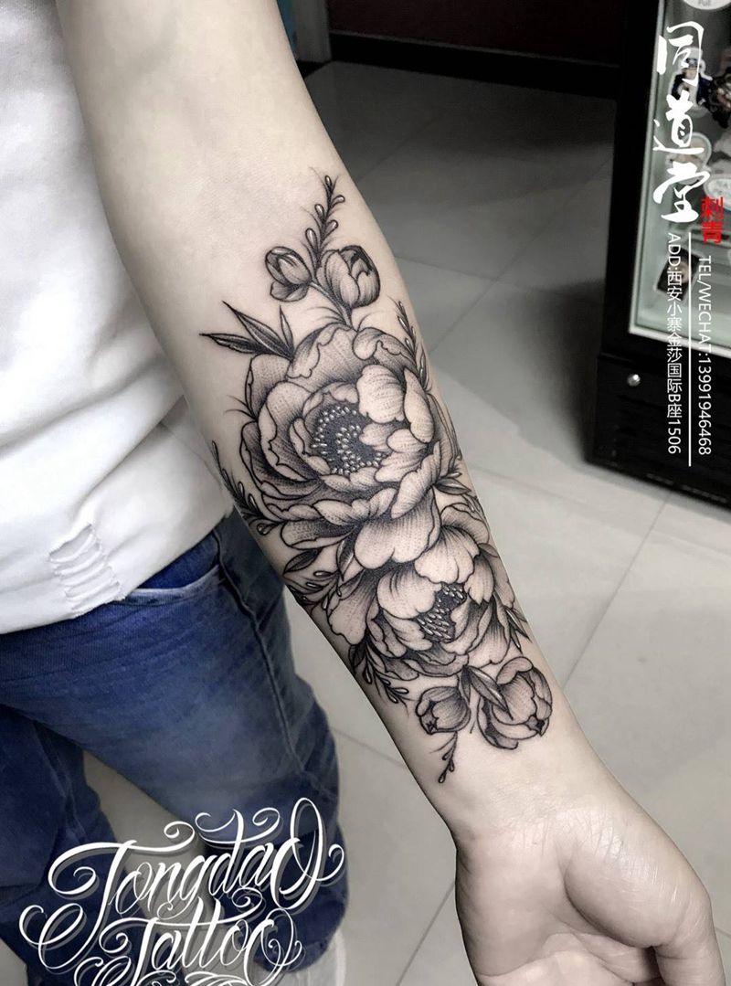 素花纹身纹身图片_手臂欧美写实新传统纹身图案