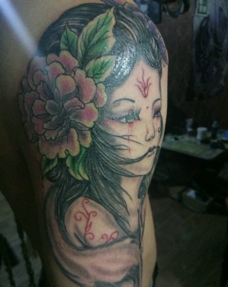 • 女性大花胸纹身_43张霸气漂亮的女性大花胸纹身图案作品