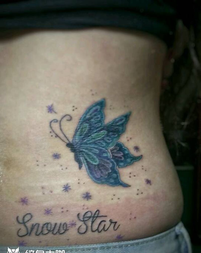后腰蝴蝶纹身图片_腰部清新原创成品纹身图案
