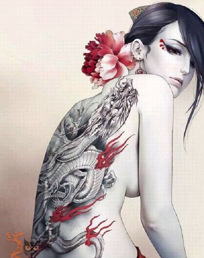• T云龙九郎纹身图片_背部老传统云龙九郎纹身图案