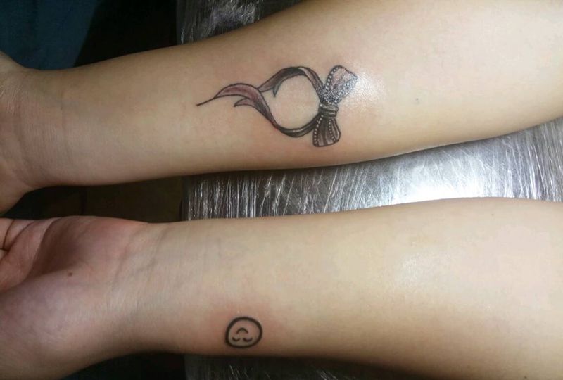 手臂黑灰蝴蝶结 笑脸纹身图片_清新原创成品纹身图案