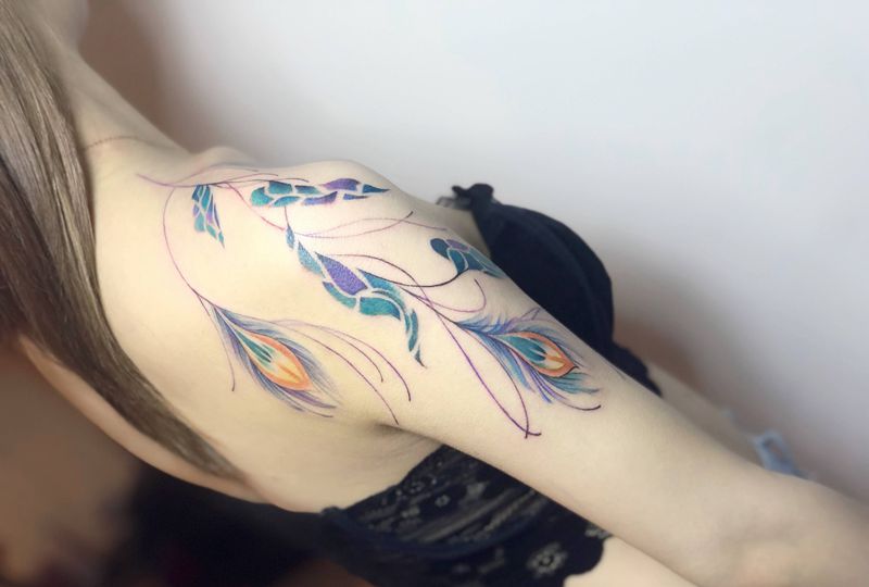 当前位置: 首页 >陕西省西安市纹身店-无店铺纹身图案>清新树叶纹身图片_肩部水彩纹身图案