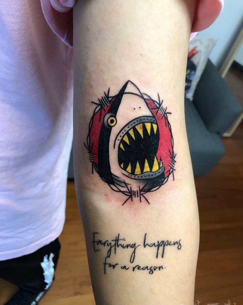 鲨鱼纹身图片_手臂Old School鲨鱼彩色纹身图案