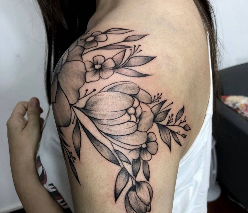 肩花纹身图片_肩部小清新纹身图案