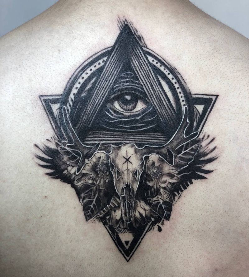 黑灰满背纹身图案