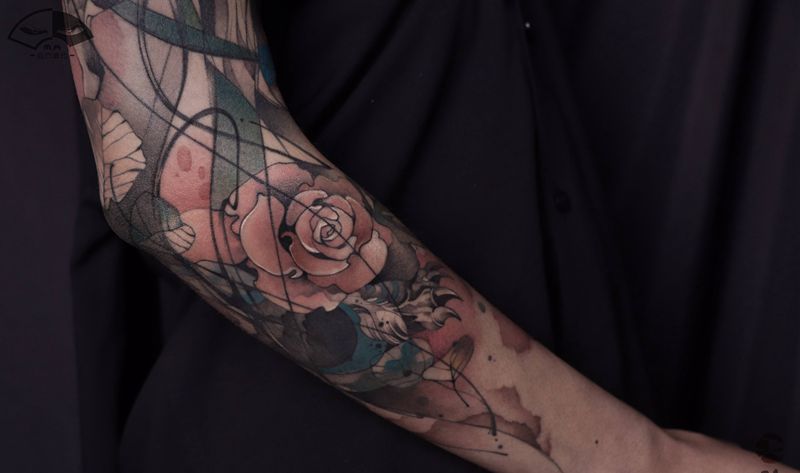 当前位置: 首页 >陕西省西安市纹身店-玄古道印纹身图案>花纹身图片_手臂水彩水墨纹身图案