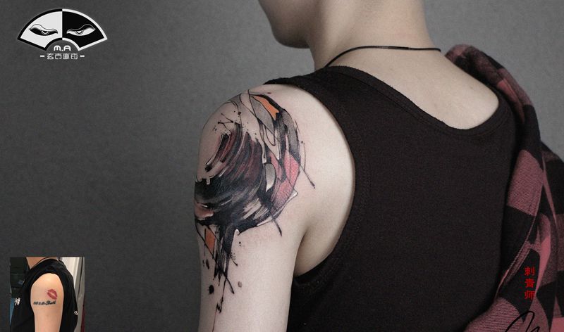 遮盖黑作品纹身图片_肩部水墨纹身图案