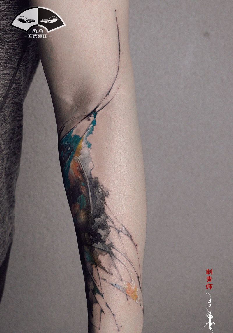 当前位置: 首页 >陕西省西安市纹身店-玄古道印纹身图案>乘风破浪纹身图片_手臂水墨纹身图案
