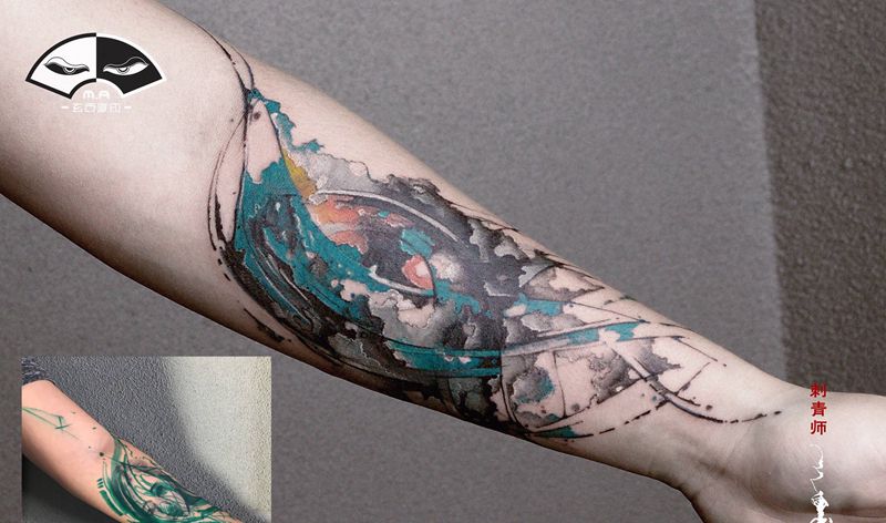 当前位置: 首页 >陕西省西安市纹身店-玄古道印纹身图案>乘风破浪纹身图片_手臂水墨纹身图案