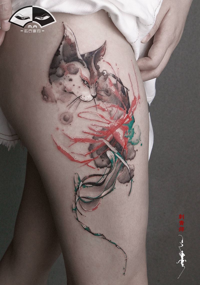 当前位置: 首页 >陕西省西安市纹身店-玄古道印纹身图案>涅槃纹身图片_腿部水墨纹身图案