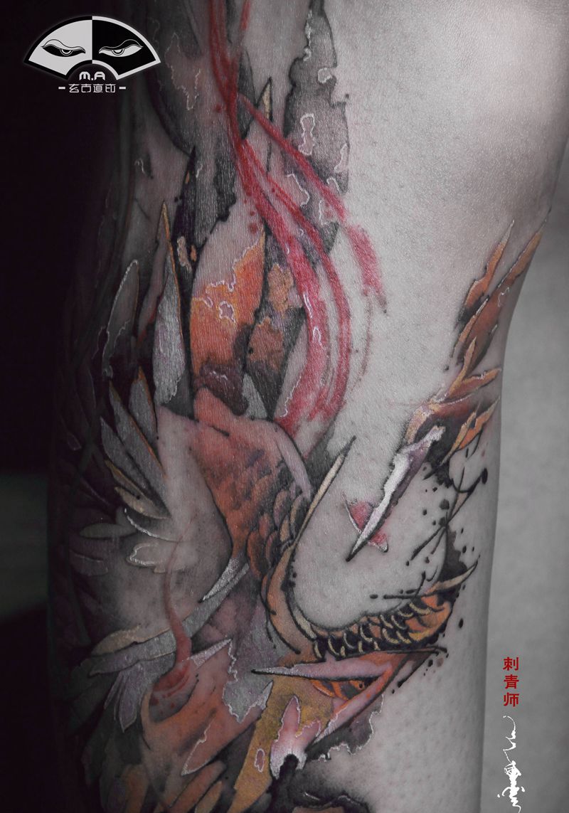 当前位置: 首页 >陕西省西安市纹身店-玄古道印纹身图案>凤凰纹身图片_腿部水墨纹身图案