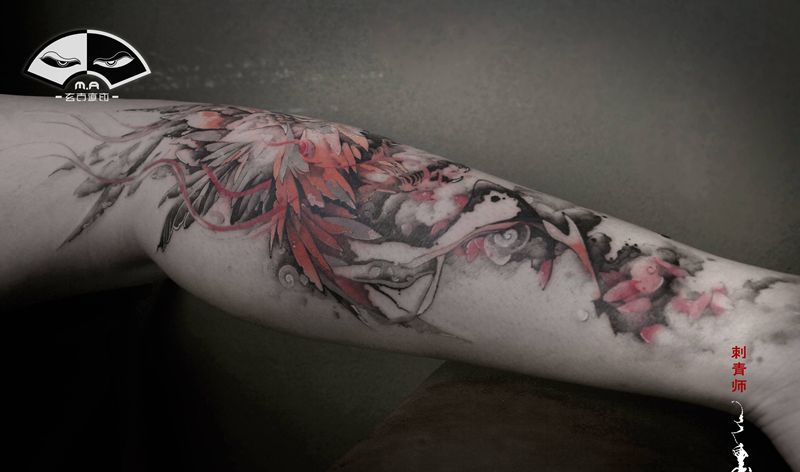 当前位置: 首页 >陕西省西安市纹身店-玄古道印纹身图案>凤凰纹身图片_腿部水墨纹身图案