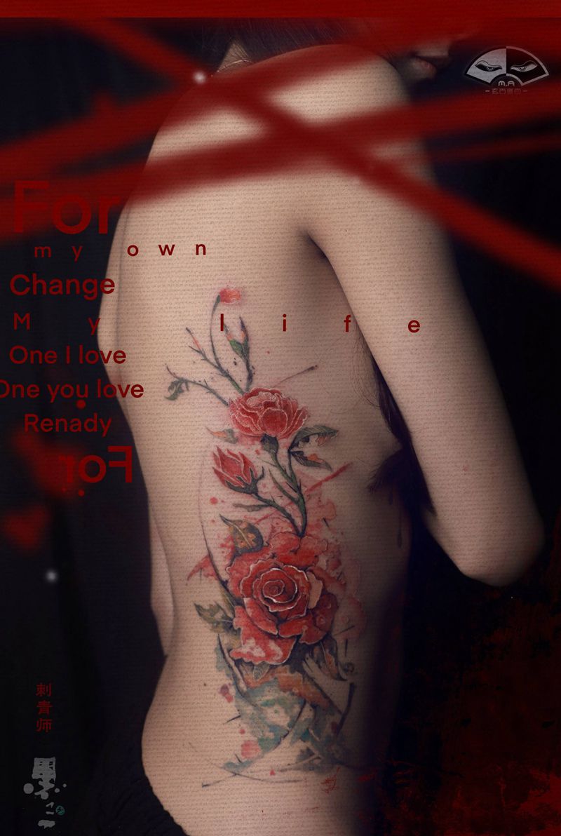 For纹身图片_腰部水墨纹身图案