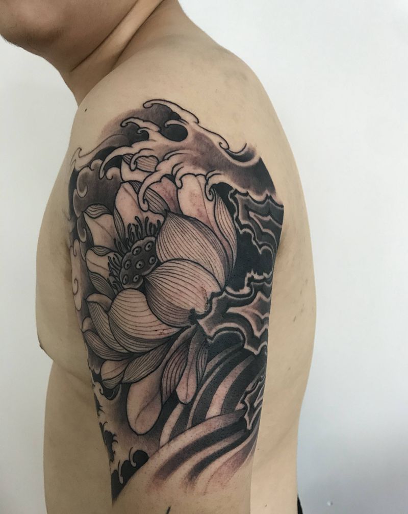 芙蓉出水纹身图片_肩部手臂老传统新传统纹身图案