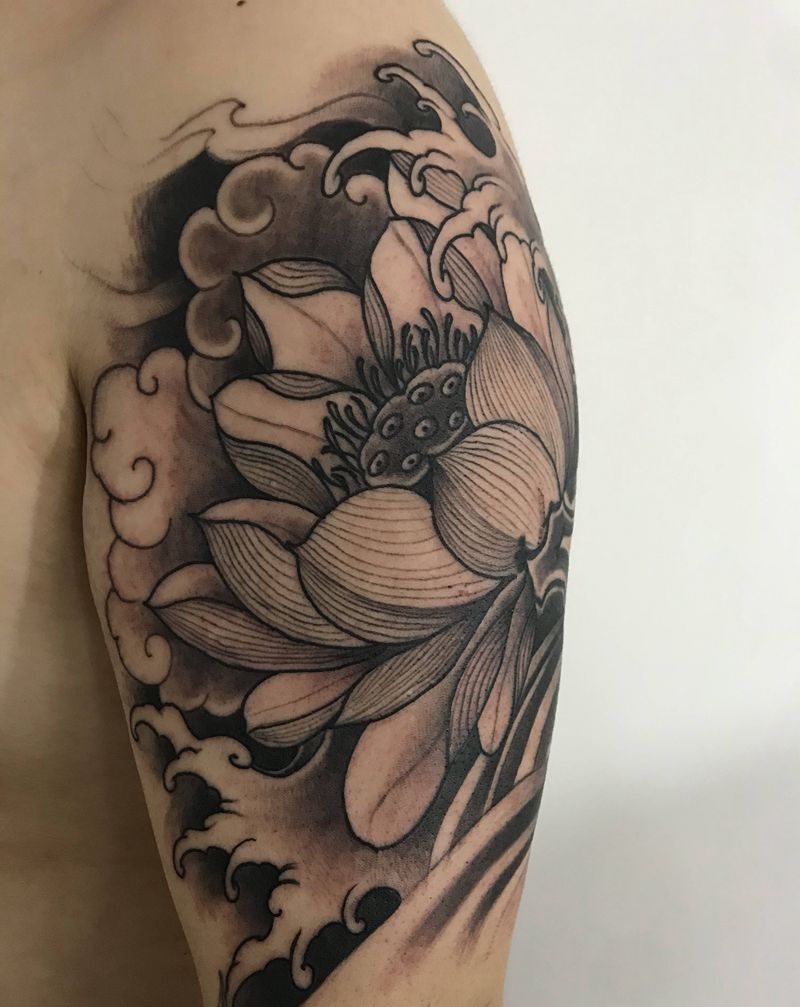 芙蓉出水纹身图片_肩部手臂老传统新传统纹身图案