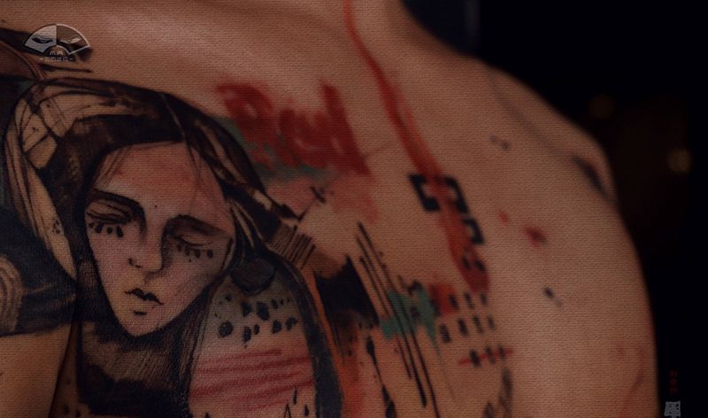 当前位置: 首页 >陕西省西安市纹身店-玄古道印纹身图案>红与黑纹身图片_手臂胸部水彩表现主义纹身图案
