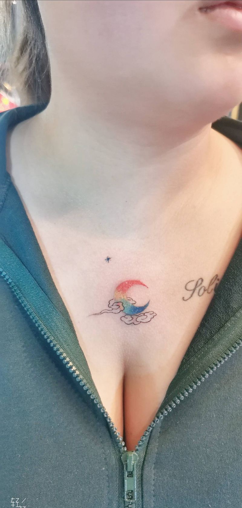 旧纹身修复纹身图片_胸部水彩纹身图案
