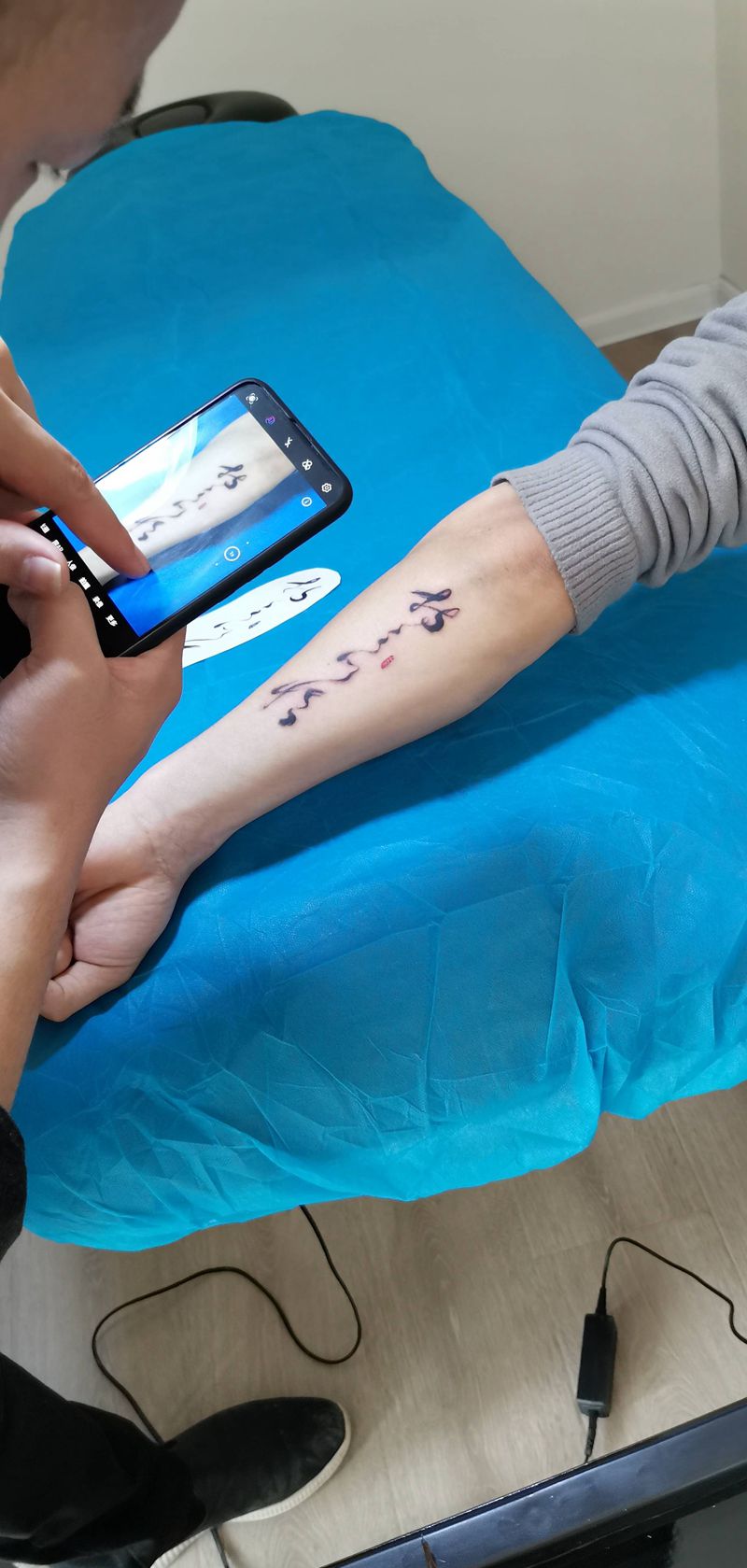 当前位置: 首页 >陕西省西安市纹身店-TENS TATTOO纹身图案>书法字体 持之以恒纹身图片_手臂水墨纹身图案