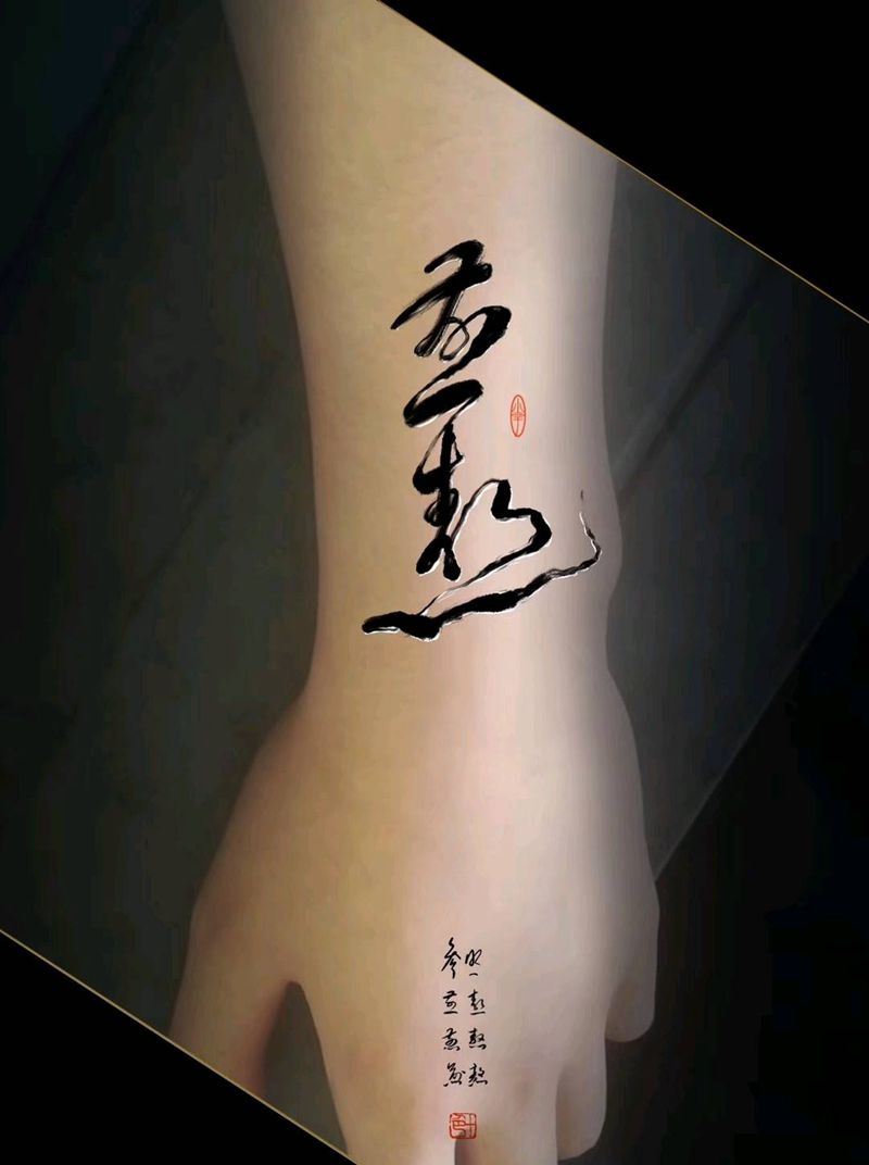 书法手稿设计纹身图片_手臂腿部水墨纹身图案