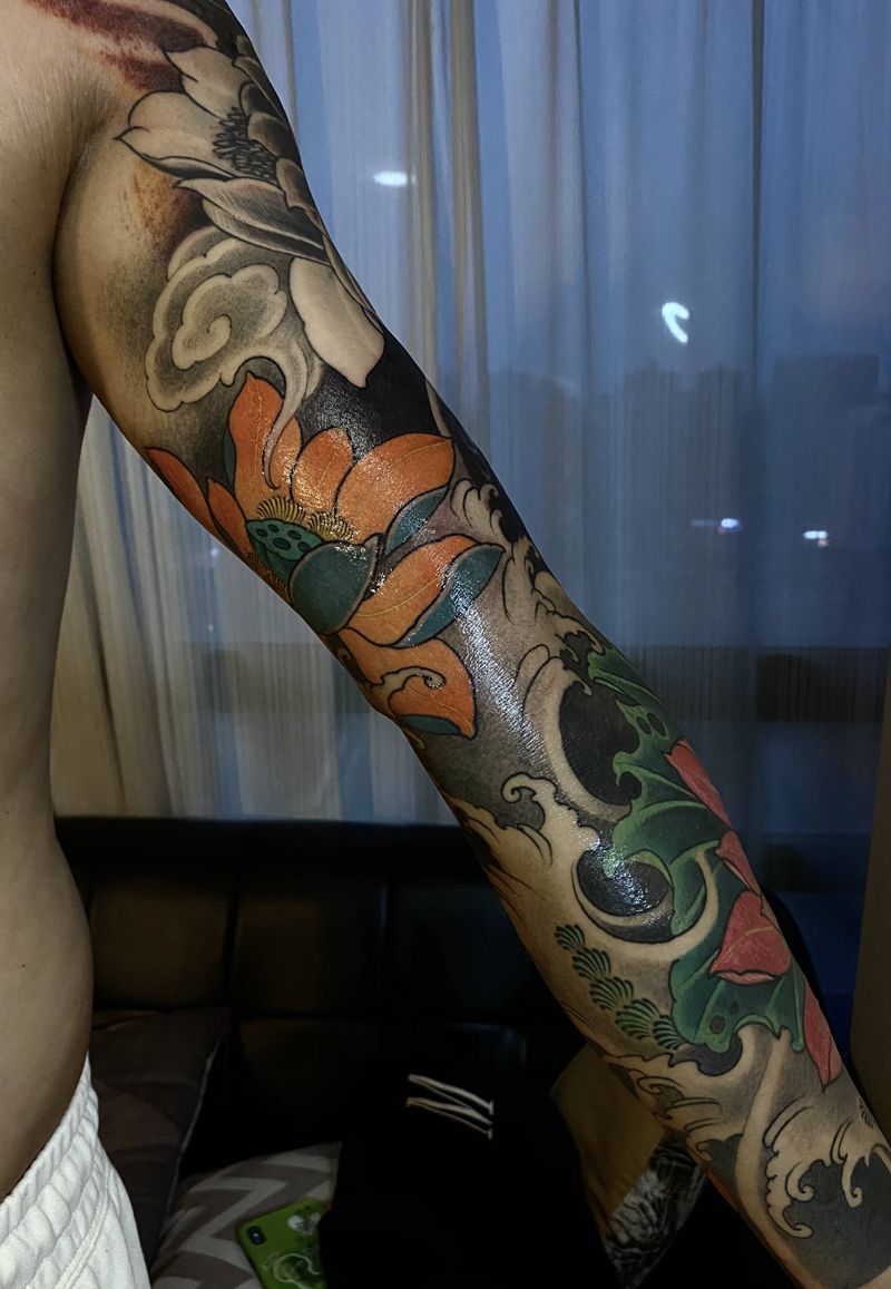 一组15张莲花纹身手