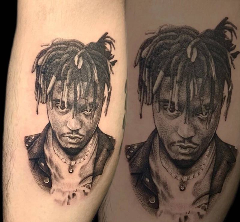 当前位置: 首页 >陕西省西安市纹身店-恶之花刺青工作室纹身图案>点刺肖像纹身图片_腿部欧美写实纹身图案