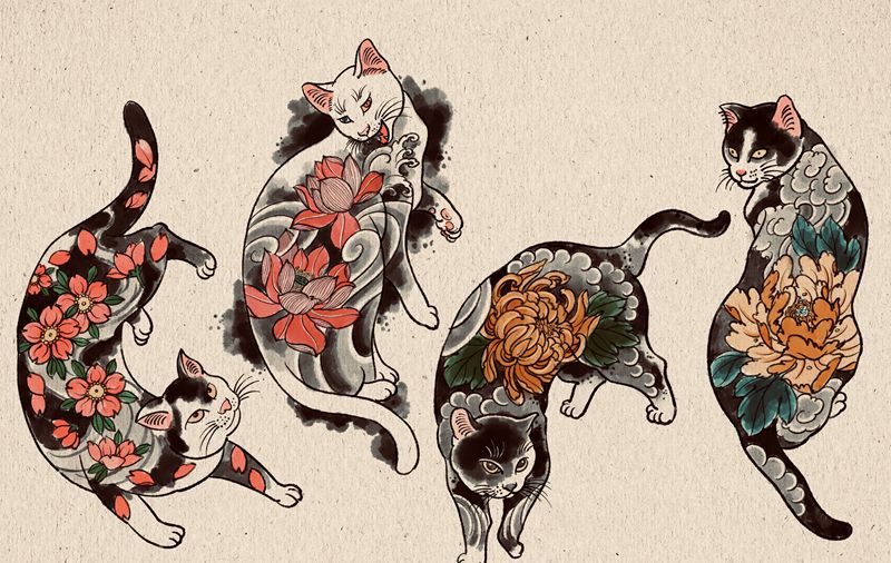 一组9张般若纹身手