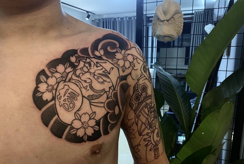 当前位置: 首页 >陕西省西安市纹身店-恶之花刺青工作室纹身图案>达摩蛋纹身图片_胸部新传统纹身图案