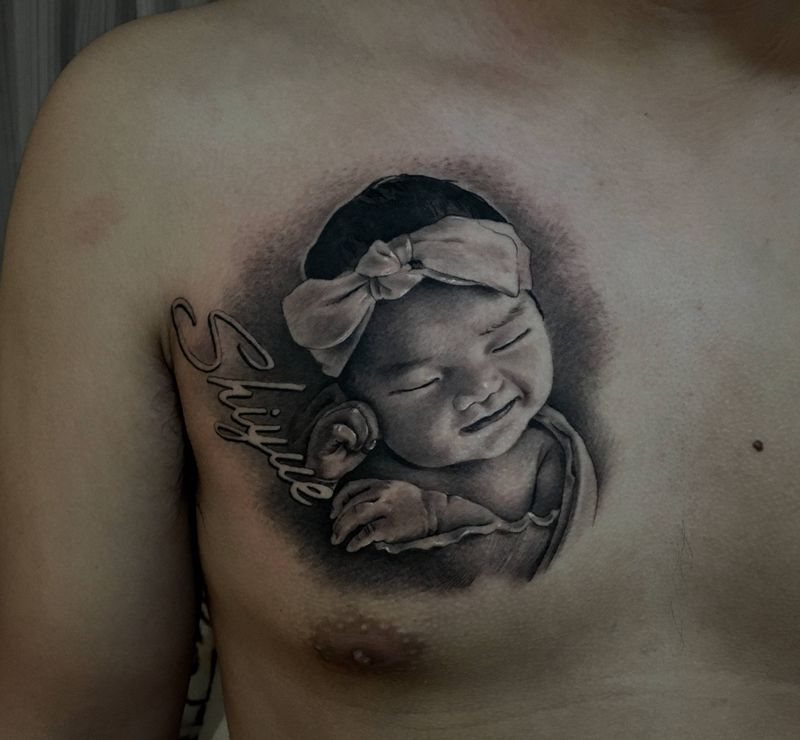 小可爱纹身图片_胸部欧美写实肖像纹身图案