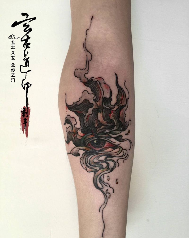 • T网红王老大花腿龙纹身图片_腿部新传统纹身图案