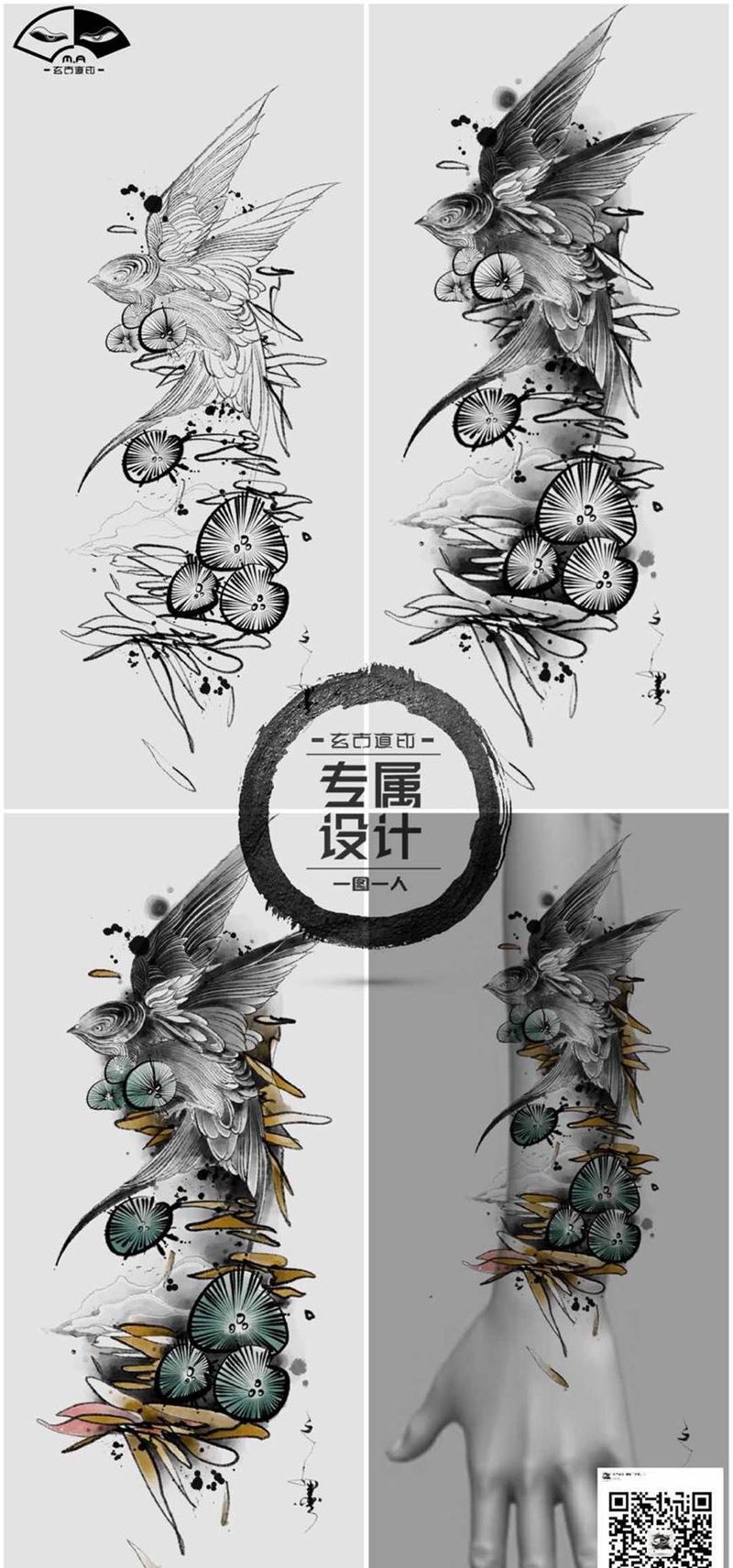 一组15张莲花纹身手
