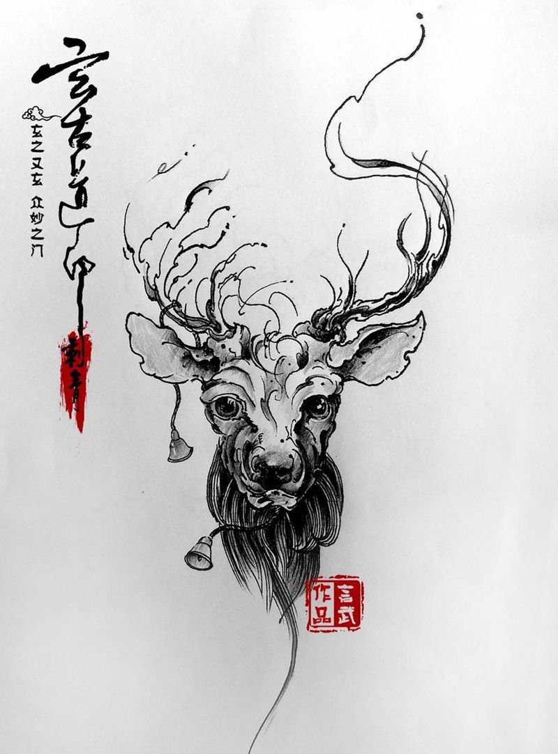 当前位置: 首页 >陕西省西安市纹身店-玄古道印༺࿄࿆༼M.A༽࿅࿆༻纹身图案>写意鹿头纹身图片_原创传统欧美清新手稿手臂腿部肩部腰部动物纹身图案