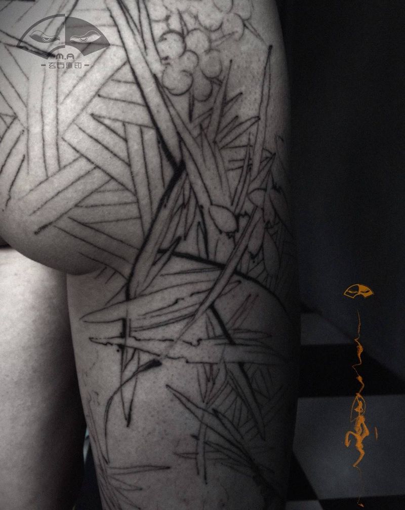 恢复中…纹身图片_背部腿部水墨纹身图案