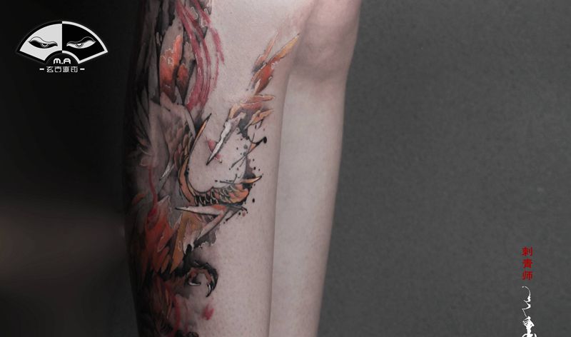 《凤凰》纹身图片_腿部水墨凤凰纹身图案