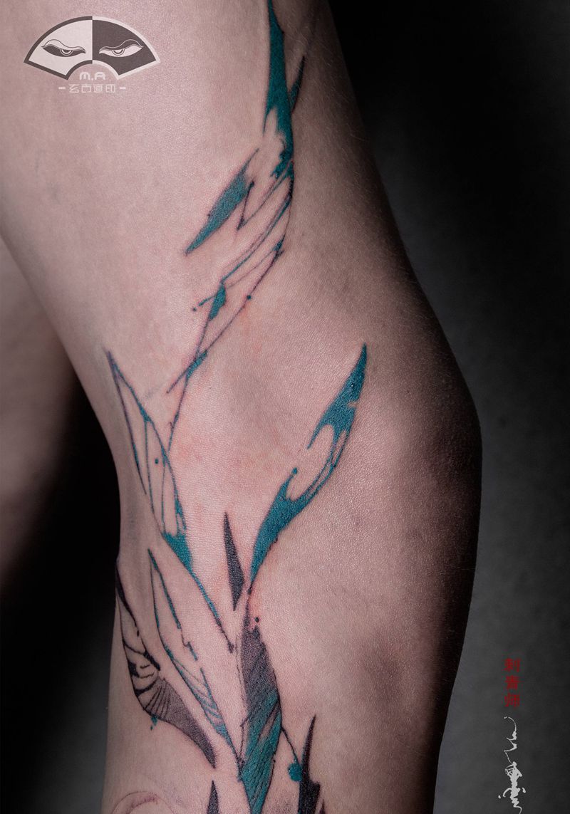 当前位置: 首页 >陕西省西安市纹身店-玄古道印༺࿄࿆༼M.A༽࿅࿆༻纹身图案>《凤凰》纹身图片_腿部水墨凤凰纹身图案