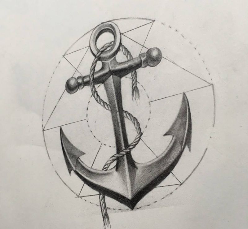 船锚纹身图片_成品腿部欧美写实字符黑灰西安船锚纹身图案