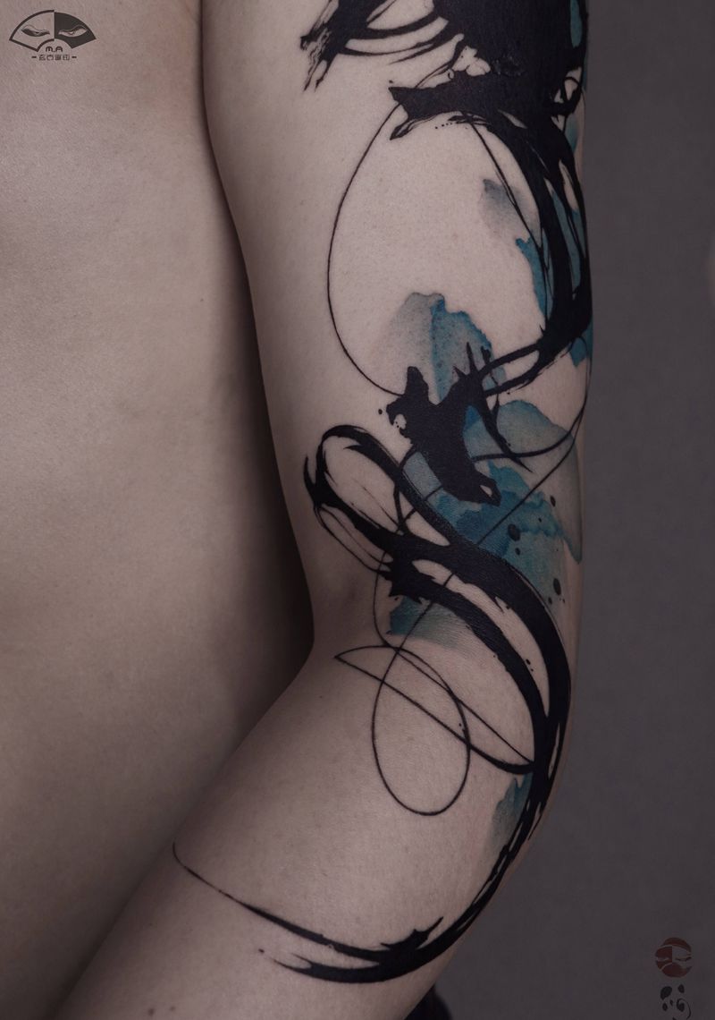 当前位置: 首页 >陕西省西安市纹身店-玄古道印纹身图案>图腾遮盖纹身图片_手臂水墨水彩遮盖纹身图案