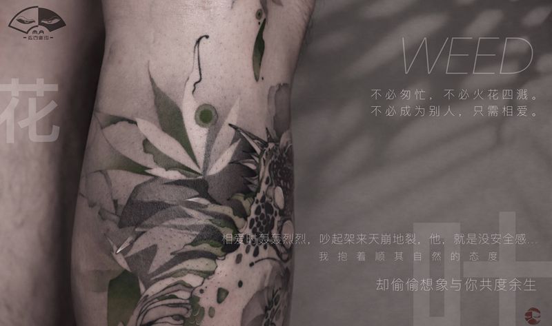 当前位置: 首页 >陕西省西安市纹身店-玄古道印纹身图案>嗨,先生纹身图片_腿部水彩水墨绿鬣蜥纹身图案