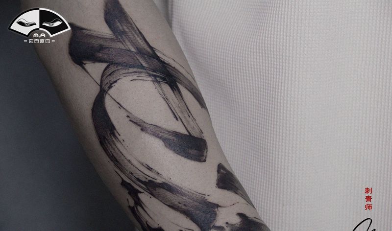 当前位置: 首页 >陕西省西安市纹身店-玄古道印纹身图案>笔触纹身图片_手臂水墨抽象纹身图案