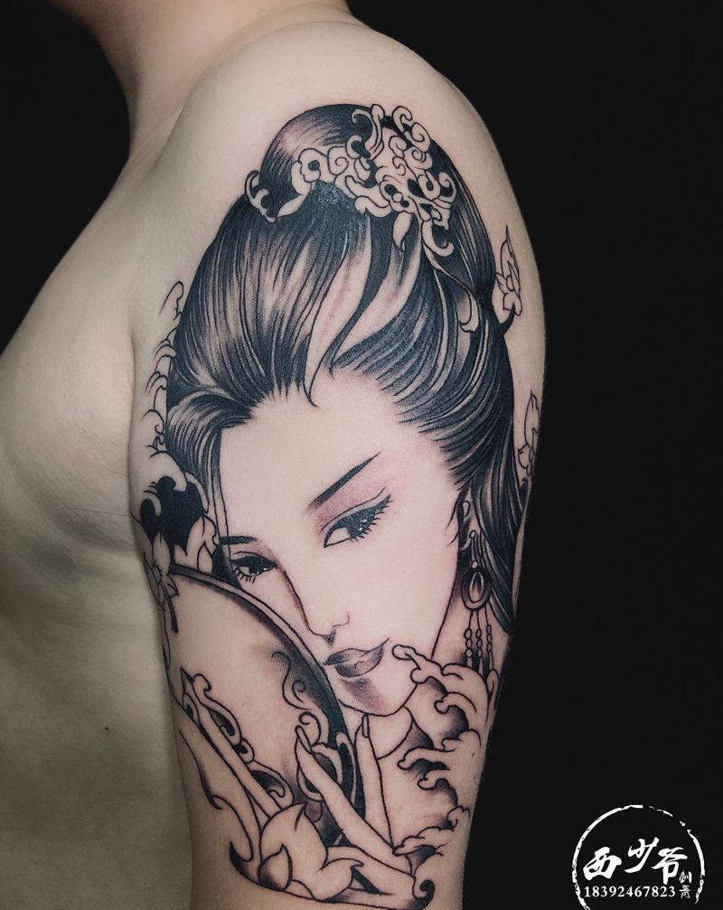 当前位置: 首页 >陕西省西安市纹身店-西少爷刺青艺术馆纹身图案>艺妓纹身图片_手臂纹身图案