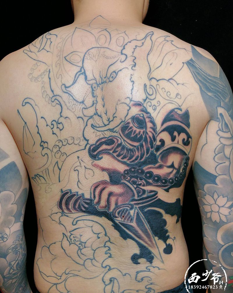 满背象神(未完)纹身图片_背部纹身图案