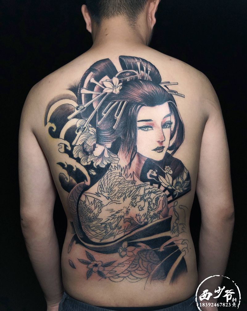 当前位置: 首页 >陕西省西安市纹身店-西少爷刺青艺术馆纹身图案>满背艺妓纹身图片_背部新传统纹身图案