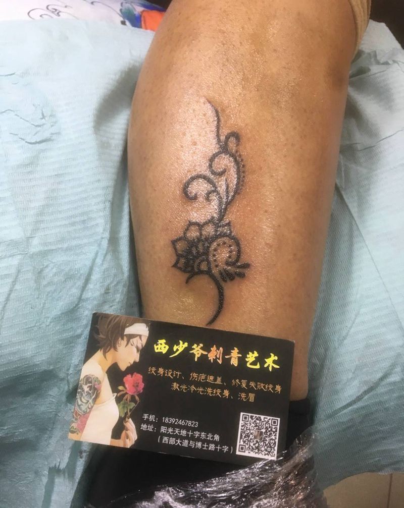 当前位置: 首页 >陕西省西安市纹身店-西少爷刺青艺术馆纹身图案>腿部小花纹身图片