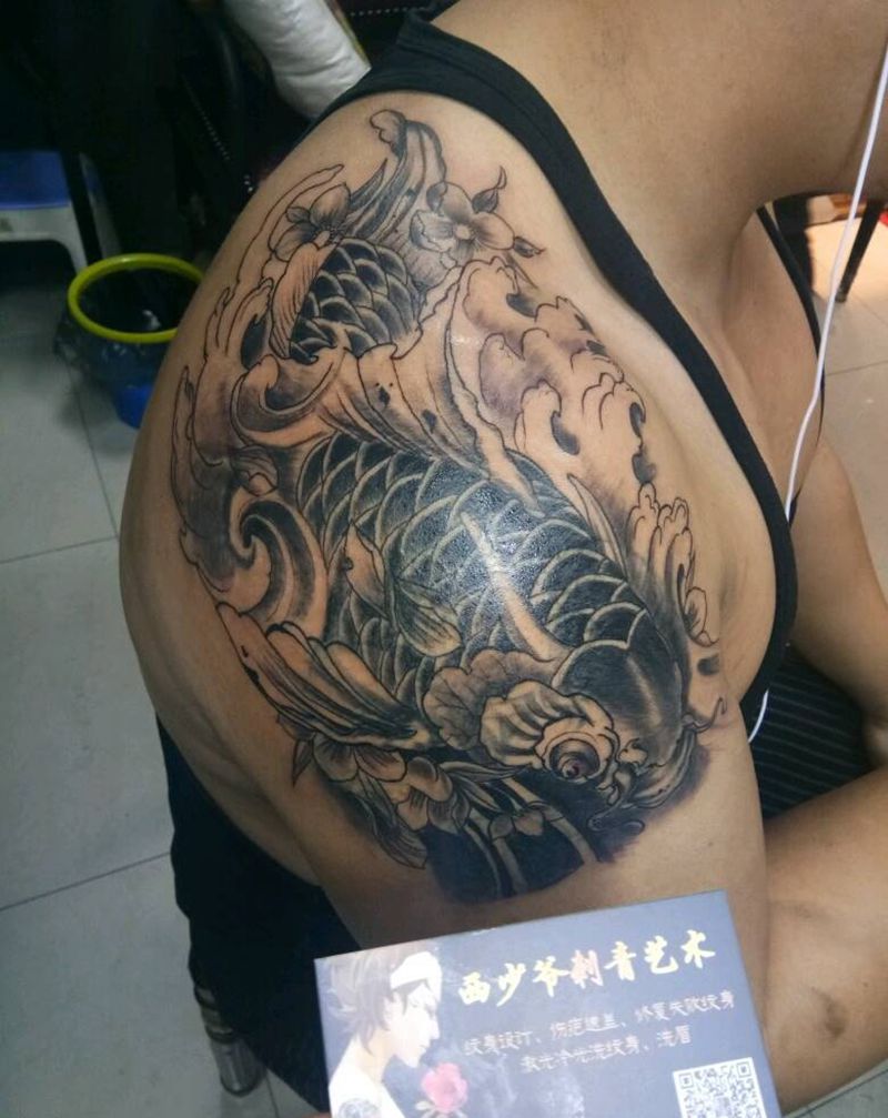 当前位置: 首页 >陕西省西安市纹身店-西少爷刺青艺术馆纹身图案>大臂鲤鱼纹身图片