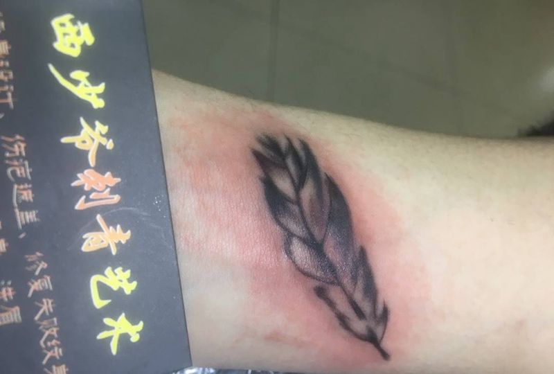 当前位置: 首页 >陕西省西安市纹身店-西少爷刺青艺术馆纹身图案>手腕羽毛遮盖纹身图片